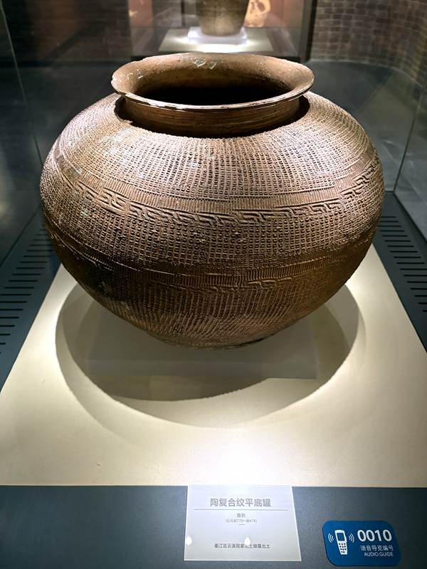 浙江省-衢州市-柯城区-衢州古城文化旅游区-衢州博物馆-婺州窑古瓷展-陶复合纹平底罐(春秋)